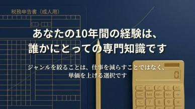 地味なスキル Webライターが「文字単価2円の壁」を超えるために。専門ジャンルの選び方と、40代の経験を武器にする方法 「文字単価1円から上がらない」と悩んでいませんか。単価を上げるには専門性が必要ですが、その専門性はあなたがすでに持っている可能性が高い。40代の経験を武器にする方法を解説しています。 2026.04.27 地味なスキル